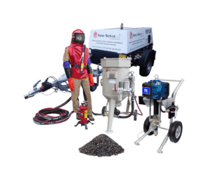 Jde především o mobilní tryskací zařízení (mobilní pískovačka), tedy pískovací jednotky různých typů a velikostí o objemu nádoby 10, 25, 40, 100 litrů ).